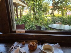 パン二個とコーヒーで1200円を超えた値段には驚きました。それでもおいしゅうございました。